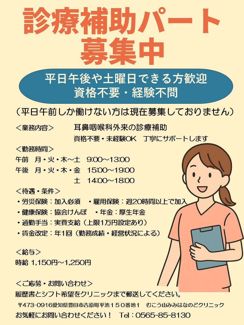 診療業務拡大により診療補助パートスタッフを募集しております。